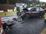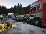 Schwerer Verkehrsunfall zwischen einem LKW und einem PKW auf der B119a Richtung St. Georgen am Walde.